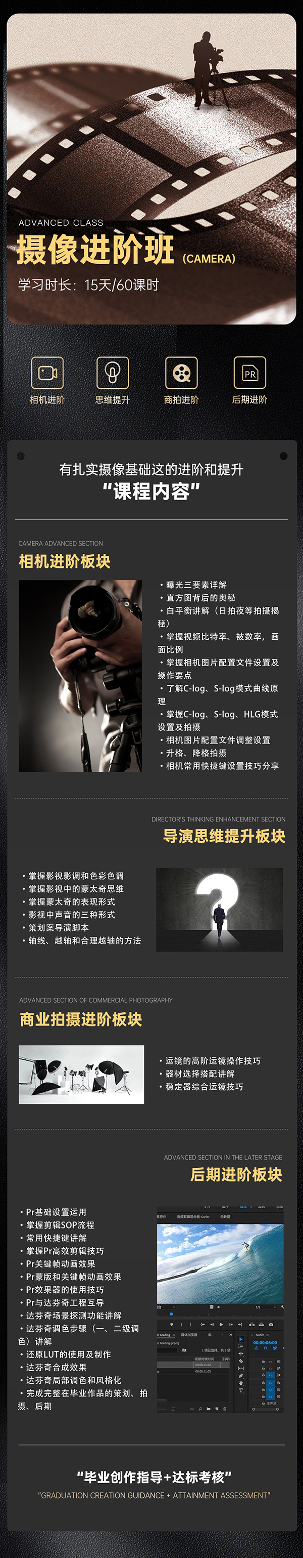 2025-10-05摄影课程的核心价值在于系统化培养影像创作能力,通过理论与实践结合解决创作痛点。以下是核心教学模块:一、掌握技术原理与控制逻辑曝光控制:理解光圈、快门、ISO的协同作用光学特性运用:焦距选择与景深控制的决策方法数字工作流:从RAW处理到色彩管理的专业技术二、构建视觉语法体系画面结构原理:点...