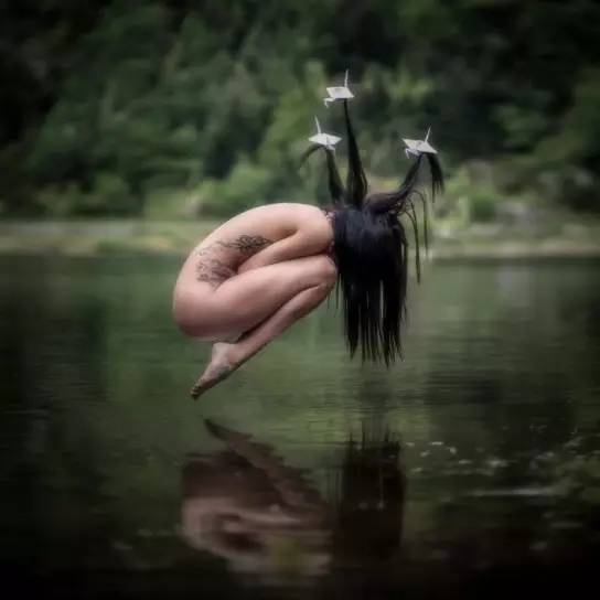 前面两种手法若都已熟练掌握,那就是可以综合使用,挑战更高难度的飘浮动作的时候了!就看看下面摄影师 Sebastien Barriol 的这张作品,其实拆解了包括头发、肢体、腿等至少有5个Cut,并都还有支撑物或是人协助拍摄,这些最后都必须在后制软体中进行整合处理,做局部拼凑的加法及消除支撑物的减法,制作出大家所见到的梦幻作品。